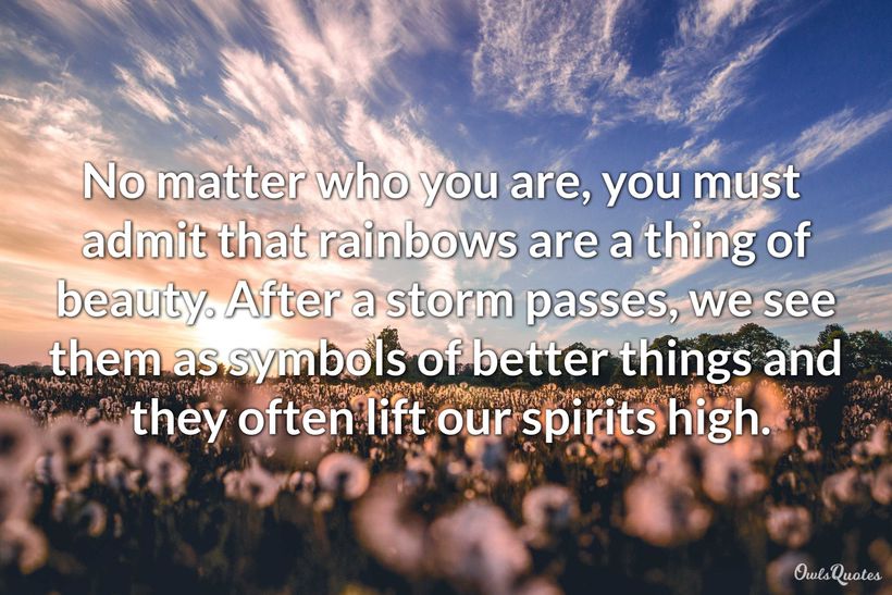 Quotes on rainbow are meant to recall us of the essence and importance of the rainbow and how they can inspire and fuel our faith. We hope you have been inspired by our beautiful rainbow quotes.